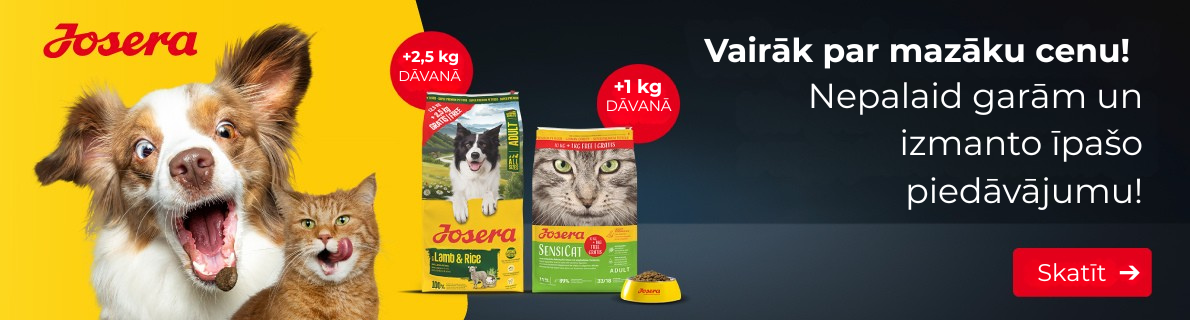 Josera - Sausā un mitrā barība suņiem un kaķiem. Izgatavota no rūpīgi atlasītām sastāvdaļām, bez pievienotiem kviešiem, sojas, cukura vai ģenētiski modificētām izejvielām, kas nodrošina augstu sagremojamību.