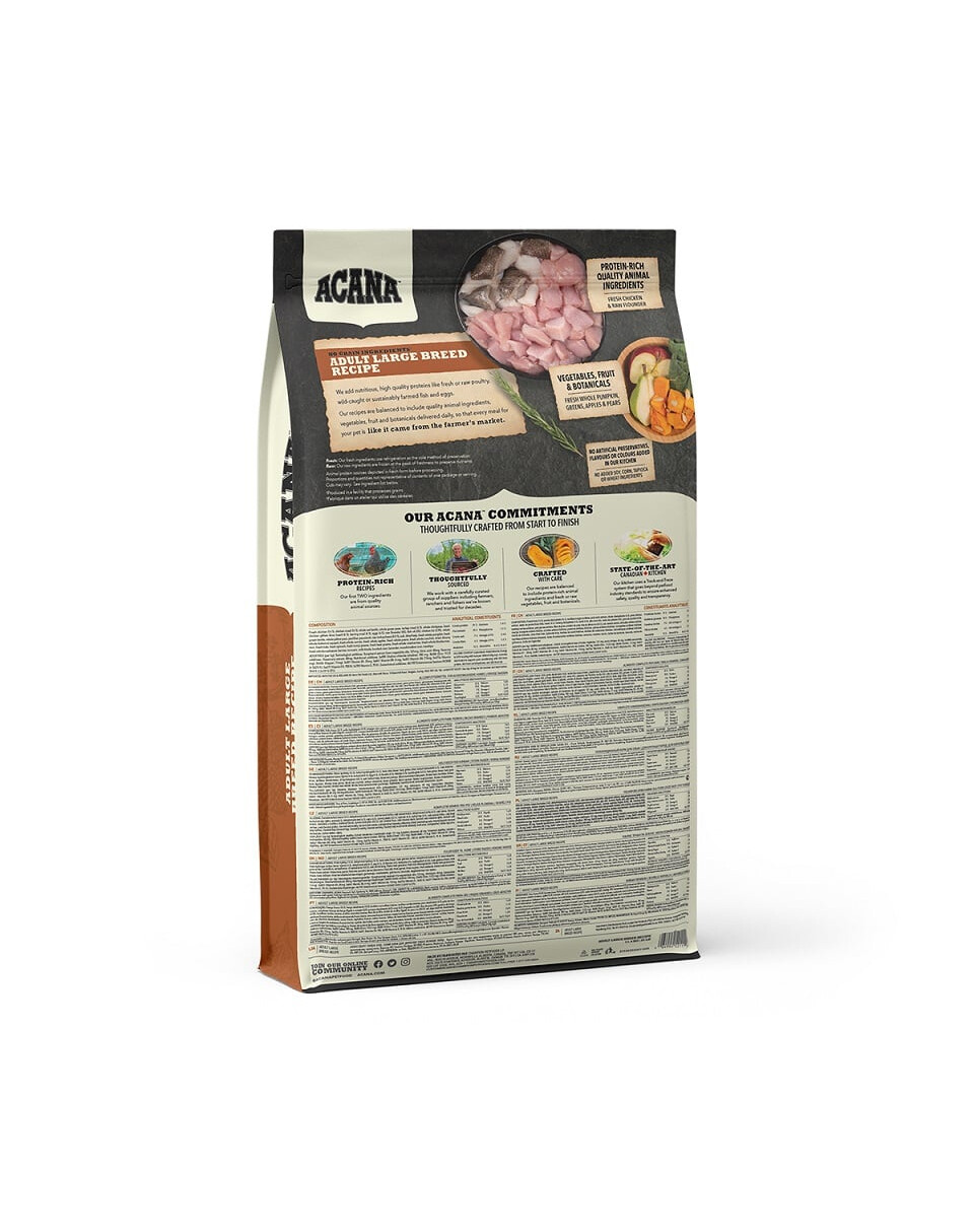 Augstu olbaltumvielu un zemu ogļhidrātu, šis izņēmuma kucēns uzturs ir bez kviešu, kukurūzas un glutēna, lai vislabāk atbilstu dabisko uzturu lielo šķirnes puppies.Loaded ar cilvēka kvalitātes gaļas sastāvdaļām (60%), Acana lielo šķirņu kucēniem ir ar bezmaksas palaist vistas, veselas olas no vietējām fermām un Klusā okeāna laši no Vankūveras salas, visi piegādātie svaigu katru dienu, tāpēc viņi nekad nav bijusi saldēta, ne ir pievienoti konservantus.