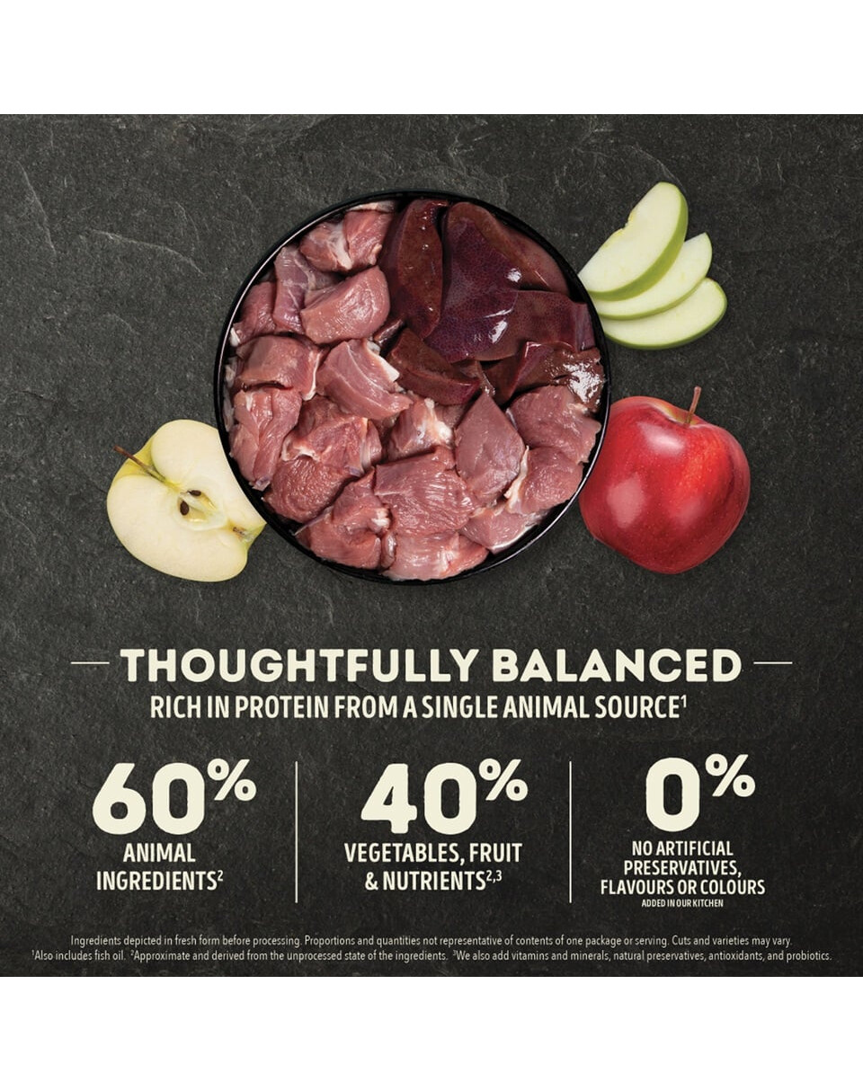 Augstais dzīvnieku izcelsmes olbaltumvielu saturs veicina reģenerāciju, kā arī muskuļu masas, kaulu un locītavu veidošanos. Ierobežots ogļhidrātu daudzums palīdz labāk kontrolēt suņa svaru. Barība satur locītavu un skrimšļu aizsardzības formulu - glikozamīns un hondroitīns aizsargā jutīgās zonas. Augļu, dārzeņu un garšaugu pievienošana ēdienam uzlabo tā garšas un garšas īpašības. Āboli, ķirbji, dzērvenes un mellenes nodrošina dabiskus vitamīnus un antioksidantus, kas veicina imūnsistēmas darbību. Kurkuma ir novērtēta tās pretvēža un pretiekaisuma iedarbības dēļ. Jūras aļģes piešķir garšu un ir pilnas ar vērtīgām minerālvielām.