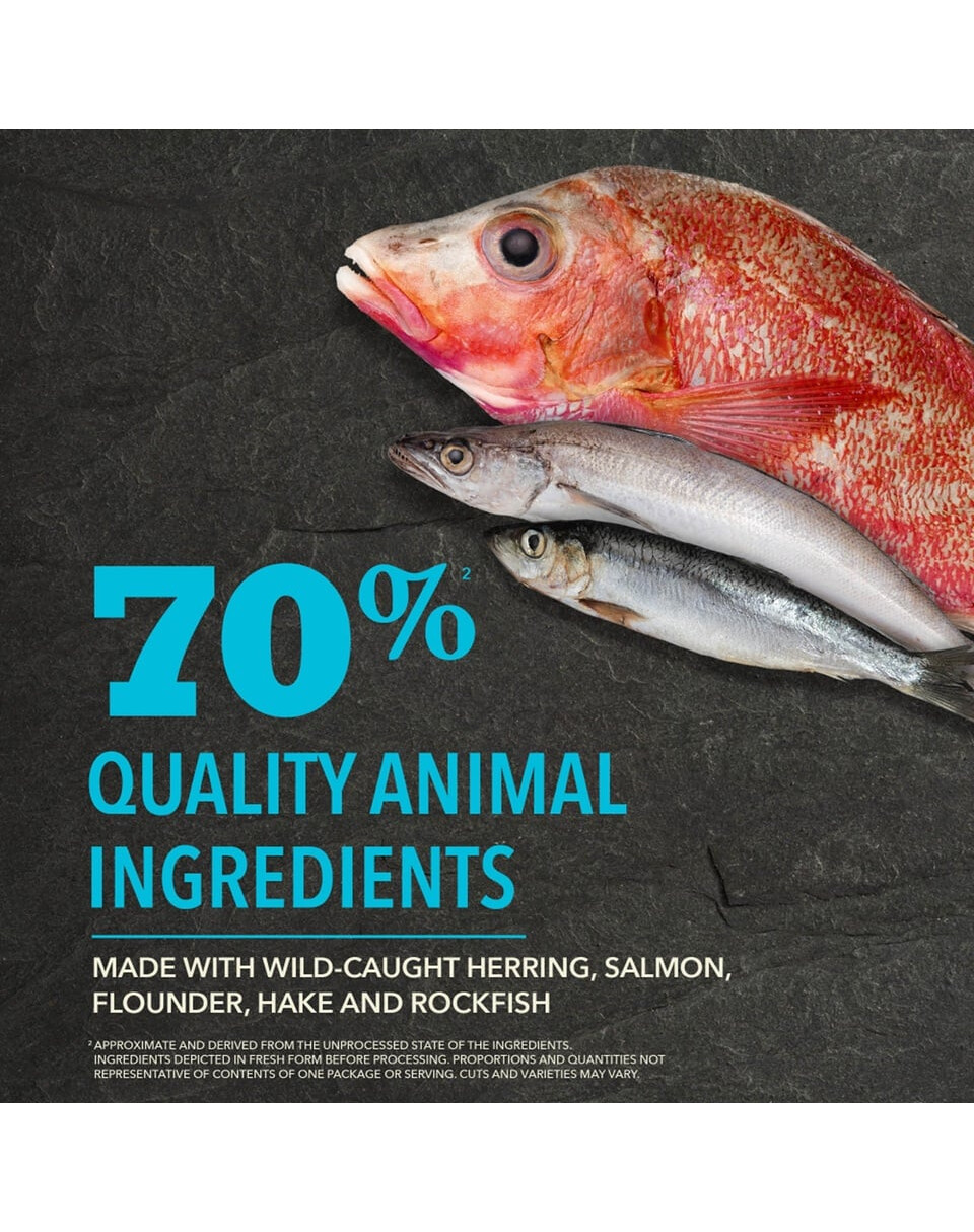 Receptē ir 70 % zivju, kas iegūtas no dabiskās nozvejas Kanādas Klusā okeāna ziemeļu ūdeņos. Izmanto sardīnes, siļķes, plekstes, mencas, merlanga, heka un laša eļļu. Tādējādi barība ir bagāta ar viegli sagremojamām olbaltumvielām un tajā ir daudz veselīgu tauku un nepiesātināto taukskābju Omega-3 un -6. Zems ogļhidrātu līmenis novērš cukura līmeņa paaugstināšanos asinīs un tādējādi samazina diabēta un pārmērīgas apetītes risku suņiem. Augsts vērtīgo olbaltumvielu daudzums nodrošina ātrāku un ilgāku sāta sajūtu. Turklāt šis sastāvs palīdz uzturēt ķermeni labā stāvoklī un kopj dzīvnieka muskuļus un kaulus. Zivis ir lielisks veselīgo tauku, olbaltumvielu un nepiesātināto taukskābju avots, kas stiprina sirdi, smadzenes un uzlabo ādas un kažoka stāvokli. Augļu, dārzeņu un garšaugu pievienošana ēdieniem uzlabo to garšas īpašības un aromātu. Āboli, bumbieri un ķirbji nodrošina dabiskus vitamīnus un antioksidantus, kas veicina imūnsistēmas darbību.