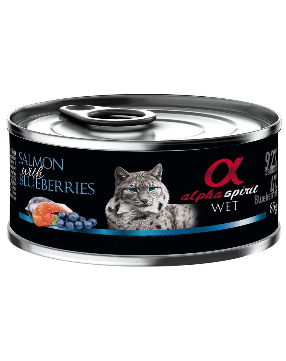 ALPHA SPIRIT konservai katėms su lašiša ir mėlynėmis 85 g