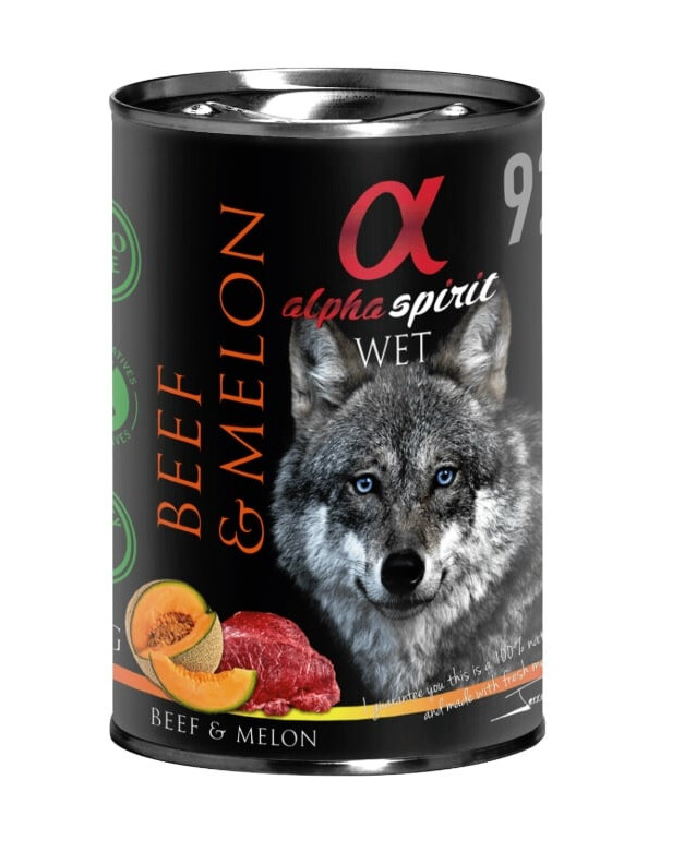 ALPHA SPIRIT konservai šunims su jautiena ir melionu 400 g x 6 vnt.