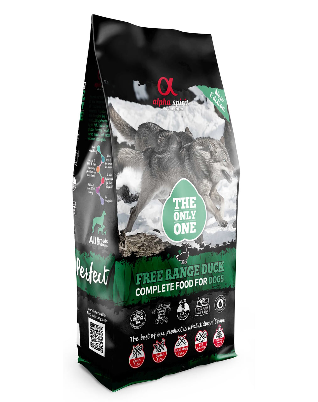 45 % svaigas pīles gaļas, 20 % svaigas vistas gaļas, 20 % svaigu zivju (spāņu sardīnes (Sardinella aurita), makreles (Scomber scombrus), stavridas (Trachurus spp.), Eiropas sardīnes (Sardina pilchardus), hidrolizēta ciete, olas, biešu mīkstums, alus raugs (Saccharomyces cerevisiae), bumbieri, ananasi, cigoriņi, banāni, romieši (Cuminum cyminum), raudene (Origanum vulgare), anīss (Pimpinella anisum), kurkuma (Curcuma longa), fenhelis (Foeniculum vulgare)