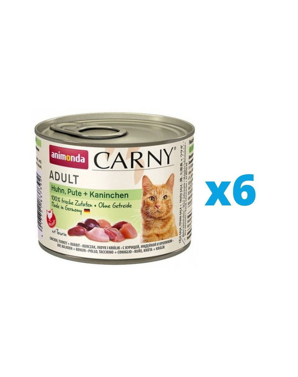 ANIMONDA Carny Adult Vištiena, kalakutiena ir triušiena 6 x 200 g