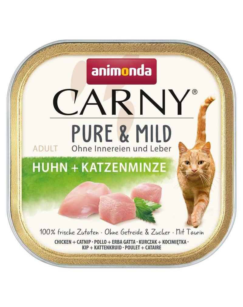 CstrongECarny Adult Pure & Mild vistas un kaķu mētra ir pilnvērtīga, viegli sagremojama barība pieaugušiem kaķiem vecumā no 1 līdz 6 gadiem,C/strongE sagatavota no 100% svaigas vistas gaļas un bagātināta ar aromātisku kaķu mētru. Recepte nodrošina sabalansētu uzturu un dabīgu garšu, kuru kaķi labprāt pieņem.Cbr /ECbr /EBarība ir izstrādāta, ņemot vērā kaķa jutīgo gremošanas sistēmu. Pateicoties vienkāršajam sastāvam, kas balstīts uz svaigu vistu, bez iekšējo orgānu un aknu pievienošanas, tā ir viegli sagremojama un nodrošina visus nepieciešamos uzturvielu komponentus, kas nepieciešami pieauguša kaķa ikdienas diētā.Cbr /ECbr /ECstrongEGalvenās iezīmes:C/strongECbr /E