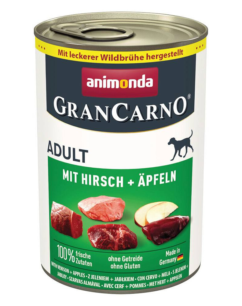 Sastāvs: 49% cūkgaļas (sirdis, aknas, plaušas, gaļa), 29% brieža gaļas buljona, 15% brieža gaļas, 4% ābolu, minerālvielas, saflora eļļa.