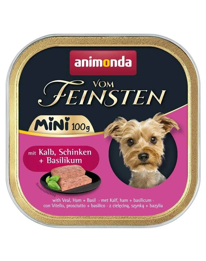 ANIMONDA Vom Feinsten „Mini“ ar teļa gaļu, šķiņķi un baziliku – 100 g mitrā barība mazām šķirņu suņiem