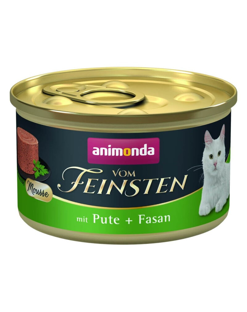 �3Cstrong�3EVom Feinsten Mousse ar tītaru un fazānu ir pilnvērtīga, maiga barība musli formā, kas paredzēta pieaugušiem kaķiem vecumā no 1 līdz 6 gadiem.�3C/strong�3E Recepte nodrošina sabalansētu uzturu un izcilu garšu, ko novērtēs pat visprasīgākie kaķi.�3Cbr /�3E�3Cbr /�3EBarība izceļas ar vieglu, krēmīgu konsistenci, tādēļ tā ir ļoti garšīga un viegli ēdama. Tā ir sagatavota no izvēlētiem gaļas sastāvdaļām, kas nodrošina visus nepieciešamos uzturvielu elementus, kas nepieciešami pieauguša kaķa ikdienas diētā.�3Cbr /�3E�3Cbr /�3E�3Cstrong�3EGalvenās iezīmes�3C/strong�3E:�3Cbr /�3E