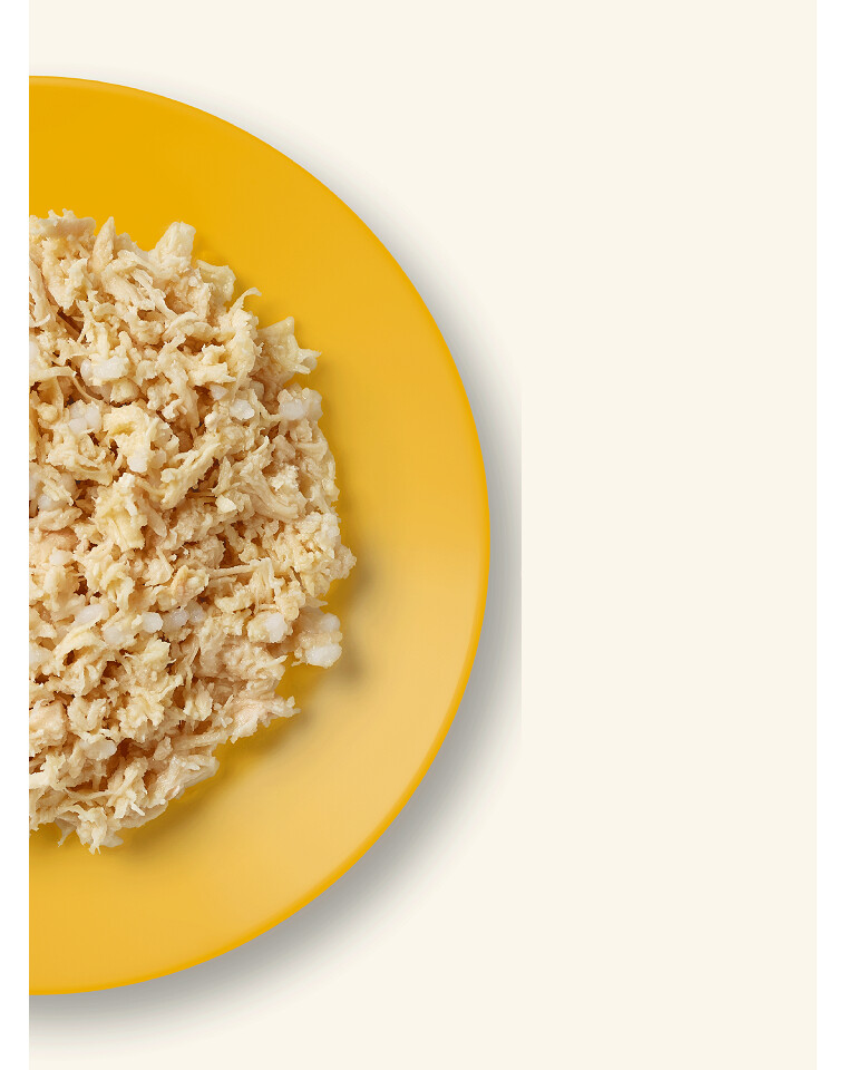 Vistas krūtiņa (70%), vistas buljons, siers (5%), rīsi.