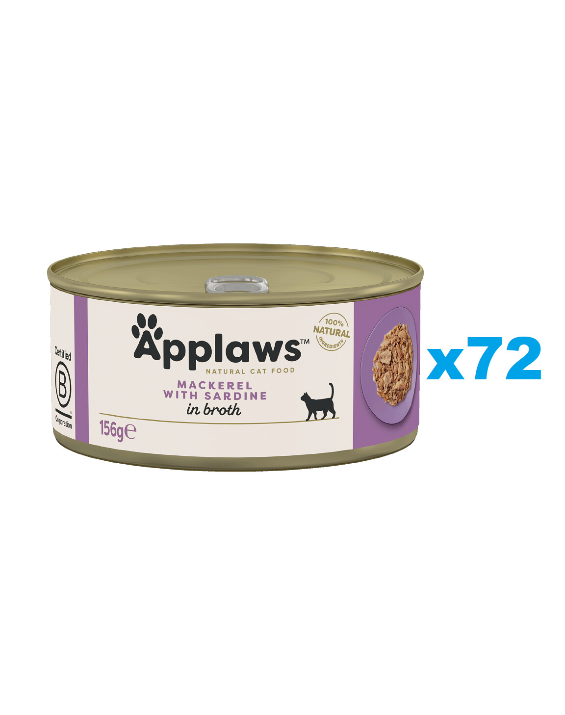 APPLAWS Cat Adult Mackerel with Sardine in Broth skumbrija un sardīne buljonā 72x156 g