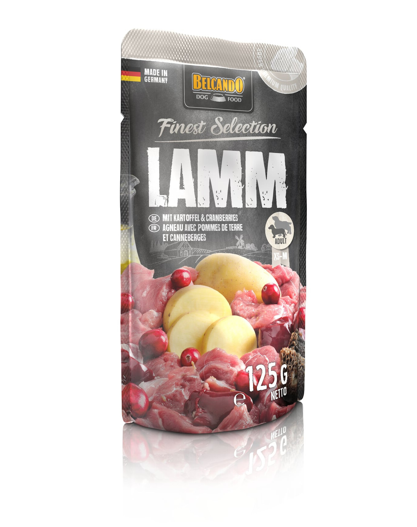 Mitrā barība ar jēra gaļu, kartupeļiem un dzērvenēm visu šķirņu pieaugušiem suņiem.