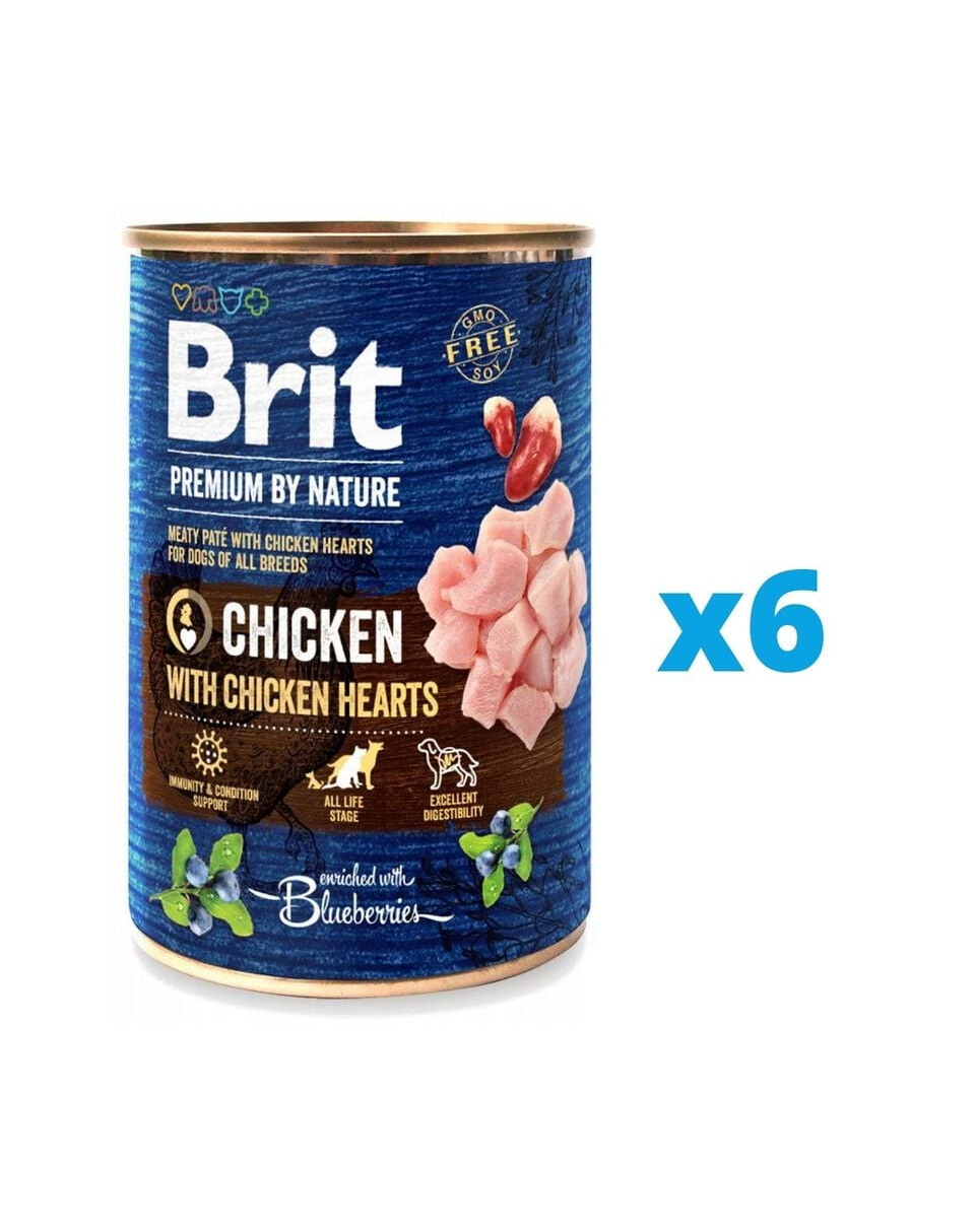 BRIT Premium by Nature Chicken&Hearts šlapias maistas šuniui su vištiena 6 x 400 g