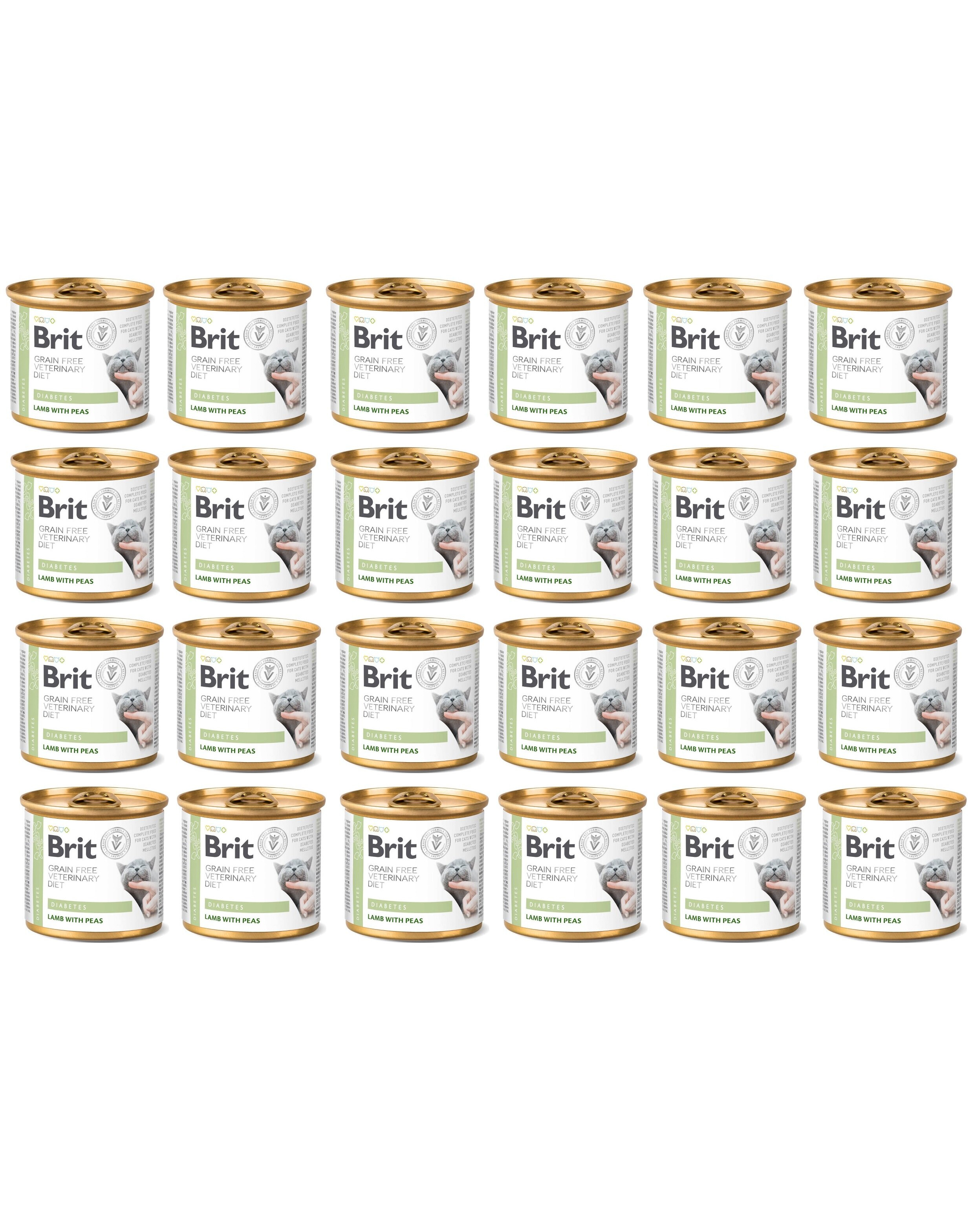 Pilnvērtīga veterinārā barība pieaugušiem kaķiem ar jēra gaļu un zirņiem glikozes apgādes regulēšanai. Tas ir paredzēts kaķiem ar cukura diabētu.