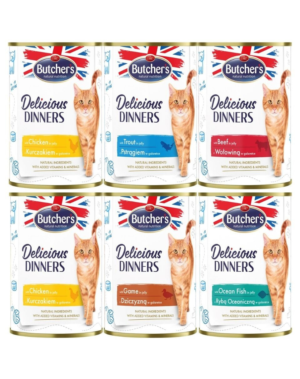 Delicious Dinners barības klāsts ir garšīgi, oriģināli ēdieni, kas pilni ar augstākās kvalitātes sastāvdaļām, lai apmierinātu pat visprasīgākos kaķu gardēžus.