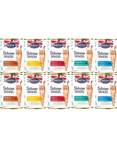 Delicious Dinners barības klāsts ir garšīgi, oriģināli ēdieni, kas pilni ar augstākās kvalitātes sastāvdaļām, lai apmierinātu pat visprasīgākos kaķu gardēžus.
