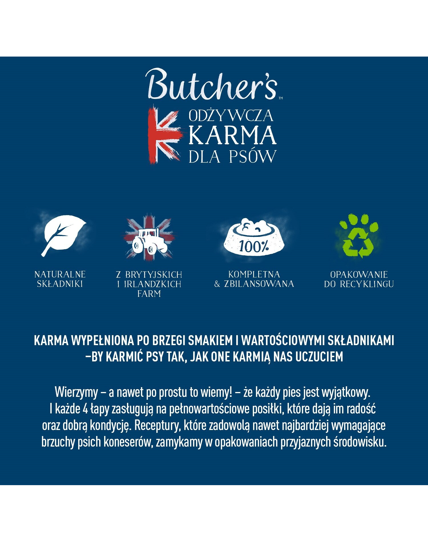 Butcher’s Original ir barības, kas izstrādātas, domājot par pieaugušu suņu ikdienas uztura vajadzībām. Visas produkcijas tiek ražotas, izmantojot dabīgas sastāvdaļas un ir iepakotas videi draudzīgās iepakojumos.