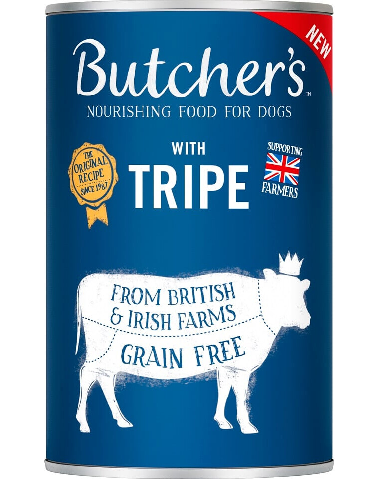 Butcher's Original Tripe ir pilnvērtīga barība, kas bagātināta ar liellopu gaļas barību, kas izstrādāta, lai apmierinātu mājdzīvnieku ikdienas vajadzības. Visi produkti ir izgatavoti no dabīgām sastāvdaļām un iepakoti videi draudzīgā iepakojumā.