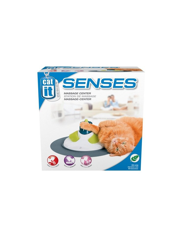Kaķiem ir liela vajadzība pēc glāstīšanas, glāstīšanas, berzēšanas. Tas ir tik svarīgi, ka tad, kad saimnieki ir darbā, kaķis jūtas ļoti vientuļš. Šāda stāvokļa paildzināšana var pat izraisīt kaķu depresiju. Tāpēc Catit dizaineri ir radījuši masāžas centru, kas apmierina kaķa vajadzību pēc glāstiem un pieskārieniem un nodrošina atpūtu, kad saimnieki ir prombūtnē. Uz rotaļlietas virsmas ir izvietotas dažādas struktūras, kas, pieskaras rotaļlietai, sniedz kaķim dažādas sajūtas. Kaķis var atstāt savu smaržas zīmi uz rotaļlietas, intensīvi berzēt galvu un kaklu un sakost gumijas kociņu, tīrot zobus un masējot smaganas (gumijas kociņš ir nomaināms). Komplektā ir iekļauta kaltēta kaķu mētra, kas, iebērta rotaļlietas rievās, vairo kaķa relaksācijas sajūtu.