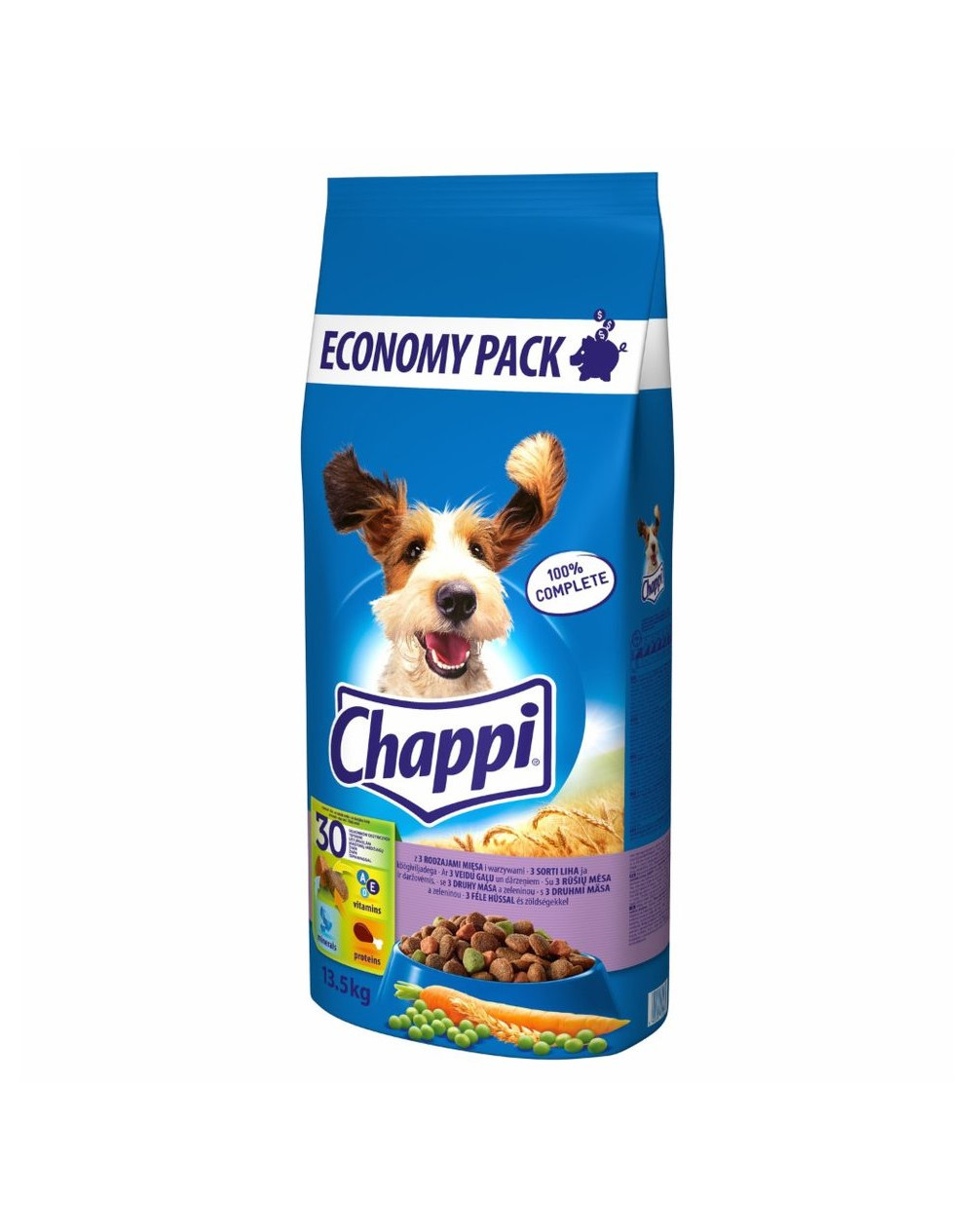 Barība visu šķirņu pieaugušiem suņiem. Kraukšķīgi gaļas gabaliņi nodrošina suni ar svarīgām uzturvielām. Satur taukskābes un A, D3 un E vitamīnus, kas veicina skaistu, spīdīgu kažoku, stiprina kaulus, zobus, smaganas un imunitāti. Iepakojums: 13,5 kg