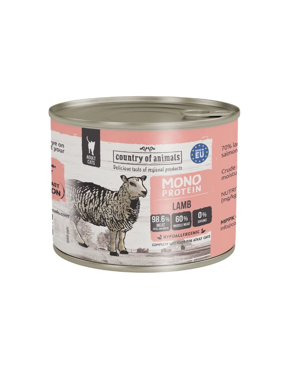 Mitrā monoproteīna barība Country of Animals ir vairāk nekā parasta, ikdienas maltīte jūsu mīlulim. Tā ir īsta svētku maltīte, kurā izcila garša apvienojas ar unikālu, veselīgu sastāvu, kas rūpējas par kaķu veselību un maigo vēderu.