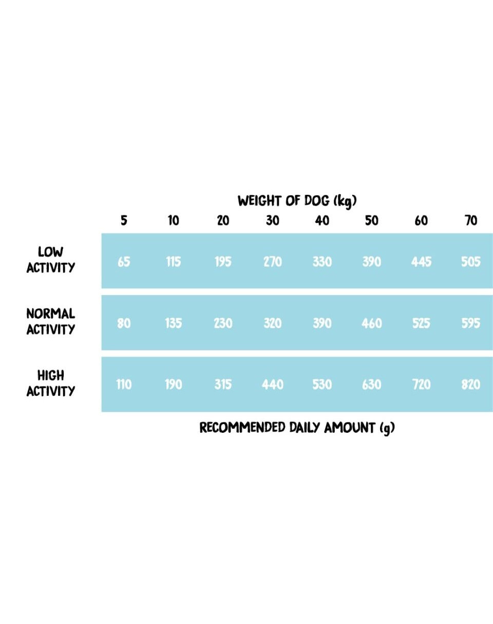 svaigs laša eļļa – bagātība Omega-3 taukskābēm (EPA un DHA), kas ir vērtīgas veselīgai ādas un suņa apmatojuma (pievienota vakuumā ražošanas beigās)