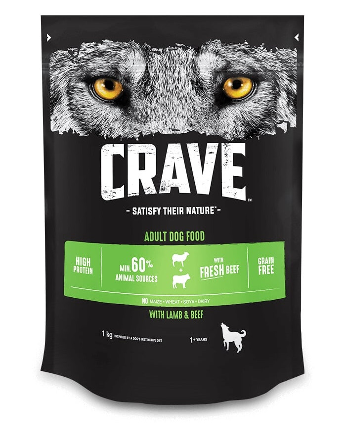 CRAVE Adult lamb & fresh beef 1 kg sausā suņu barība ar jēra un liellopa gaļu