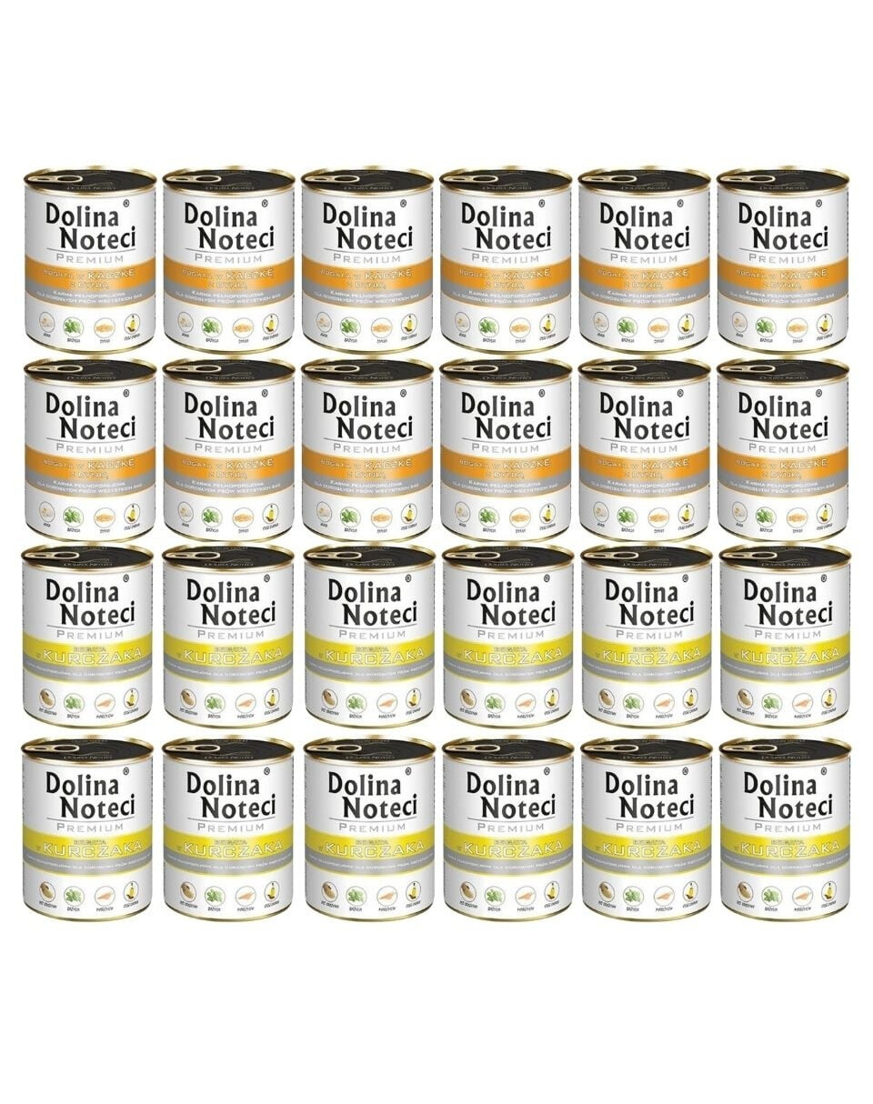 Komplekts DOLINA NOTECI Mix garšu Premium Bagāta ar vistas un pīles gaļu ar ķirbi 24x800g satur: