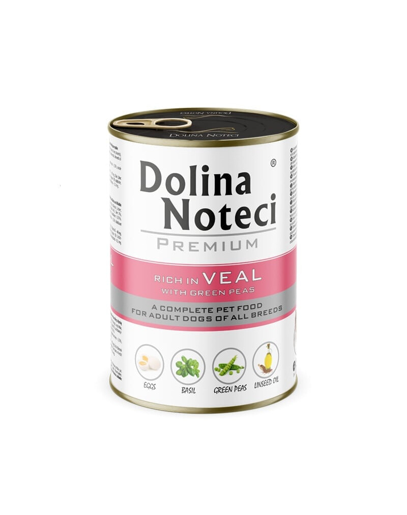 Dolina Noteci Premium ir ideāla barība ikdienas maltītei sunim. Liesā teļa gaļa, bagāta ar olbaltumvielām un dzelzi, atbalsta suņa veselību un enerģiju. Olu pievienošana uzlabo garšīgumu un uzturvērtību, bet zaļie zirņi nodrošina olbaltumvielas, vitamīnus K, C un šķiedrvielas, kas nodrošina ilgstošu sāta sajūtu. Linu eļļa atbalsta ādas un apmatojuma stāvokli, bet ceļmallapa pozitīvi ietekmē gremošanu.