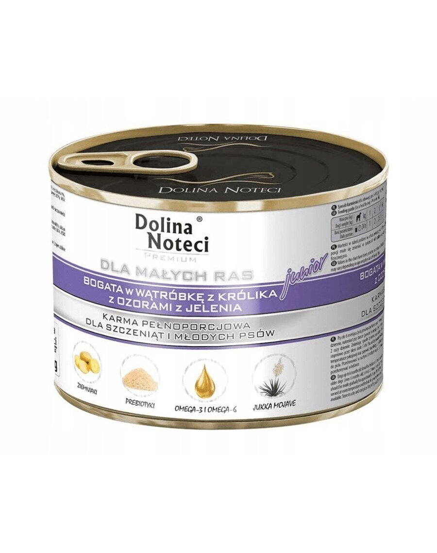 Šo barību raksturo augsts viegli sagremojamo olbaltumvielu saturs, kas to padara par ideālu pilnvērtīgu olbaltumvielu avotu. Truša un brieža gaļa ir bagāta ar vitamīniem, kas atbalsta jūsu suņa imūnsistēmu, jo satur dzelzi, selēnu, varu un cinku. Tās arī uztur jūsu mīluļa ādu un kažoku lieliskā stāvoklī. Šajā ēdienā, tāpat kā citos Dolina Noteci PREMIUM līnijas produktos, atradīsiet vitamīnus B6, B12, niacīnu un kāliju.