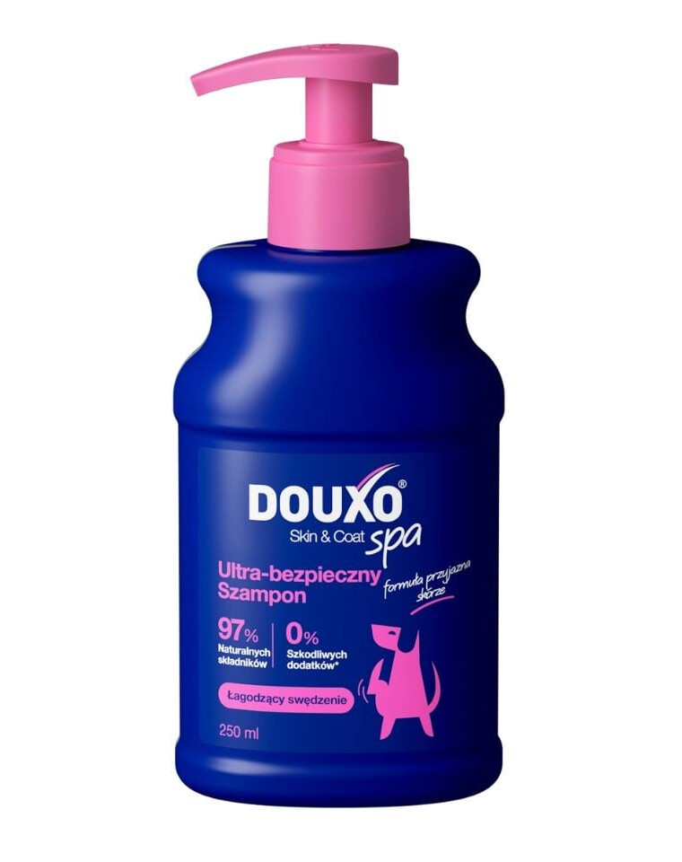 ULTRA-DROŠS, HIPOLERĢISKS ĀDAS ATTĪRĪŠANAS ŠAMPŪNS. Šampūns DOUXO Skin & Coat SPA Itch Soothing maigi, bet efektīvi attīra suņa ādu ar tendenci uz vieglu niezi vai kairinājumu, mazinot diskomfortu un atstājot kažoku mīkstu un spīdīgu pēc katras peldes.