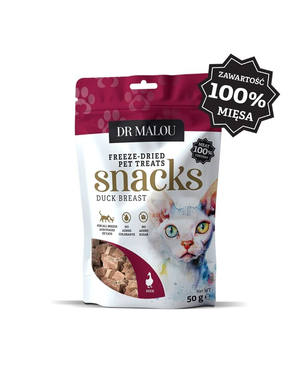 Izņēmuma, veselīgi un dabiski našķi Tavam kaķim! Liofilizētie kubiņi Dr Malou ir papildbarība, kuras sastāvs runā pats par sevi – 100% gaļas no pīles krūtiņas. Bez liekiem piedevām, konservantiem, krāsvielām, graudiem un cukura. Tikai tīra kvalitāte un pilnība uzturvērtību!