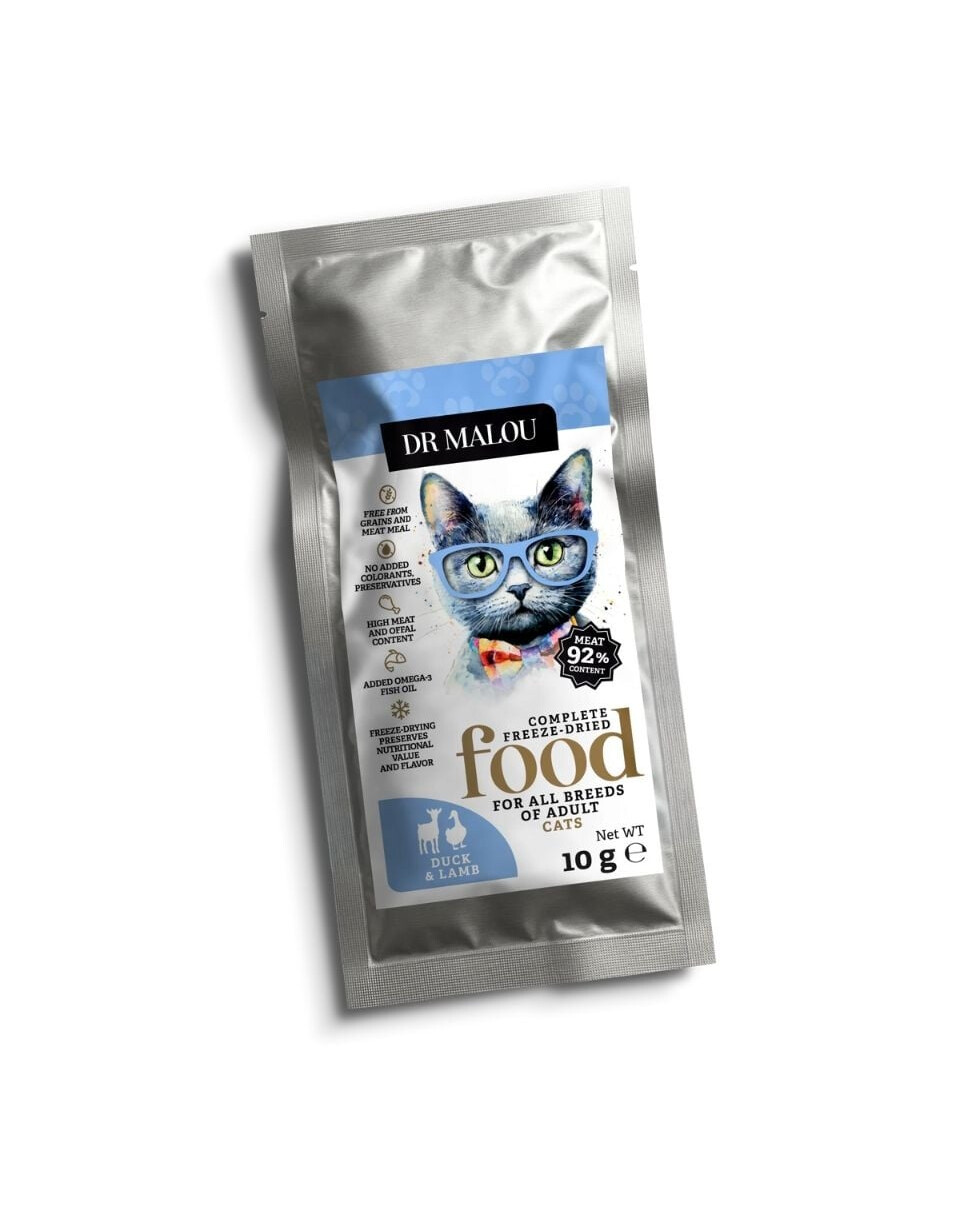 Barība Dr Malou nav tikai veselīga uztura – tā ir arī ikdienas izklaides un aktivitātes deva Tavam kaķim! Liofilizācija nodrošina vērtīgu uzturvielu saglabāšanu, bet bagātīgais sastāvs atbalsta spēku un imunitāti.