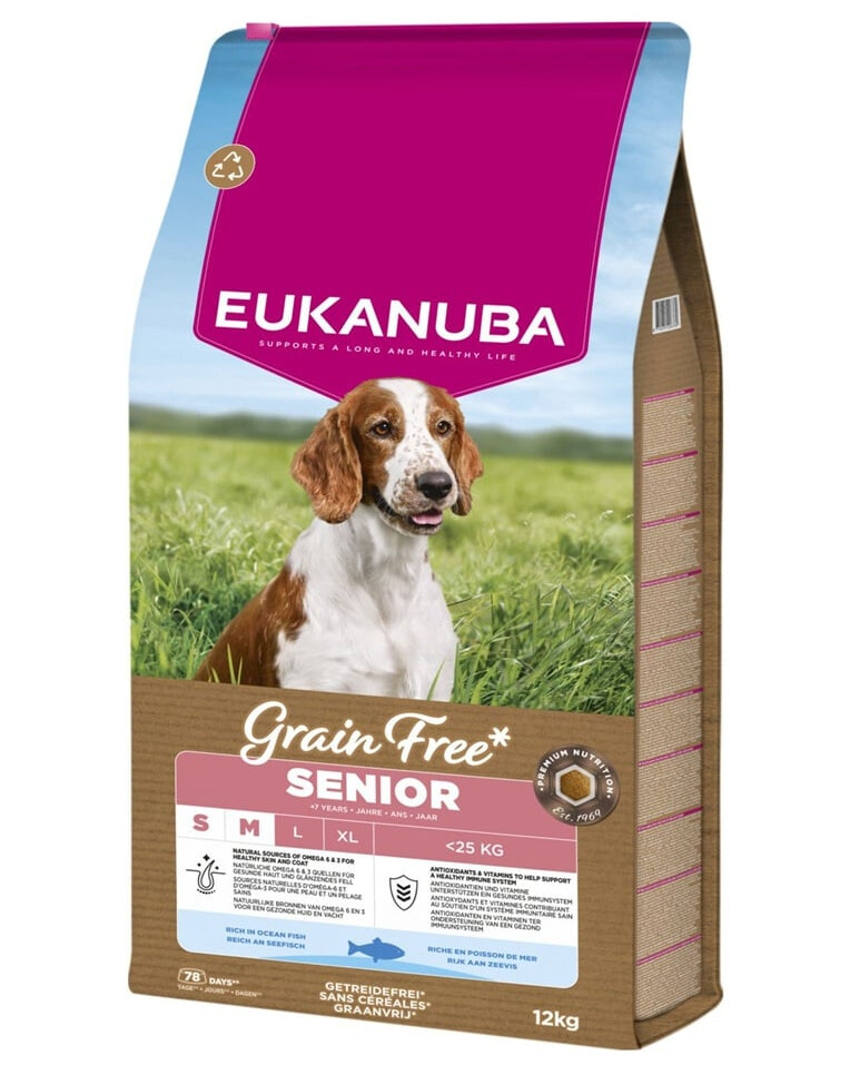 Sauss bezgraudu barība, kas paredzēta vecākiem maziem un vidējiem suņiem. Formula, kas balstīta uz okeāna zivīm — viegli sagremojams, augsti uzsūcošs olbaltumvielu un Omega-3 taukskābju avots, kas atbalsta ādu, spalvu, locītavas un vispārējo vecā suņa stāvokli.