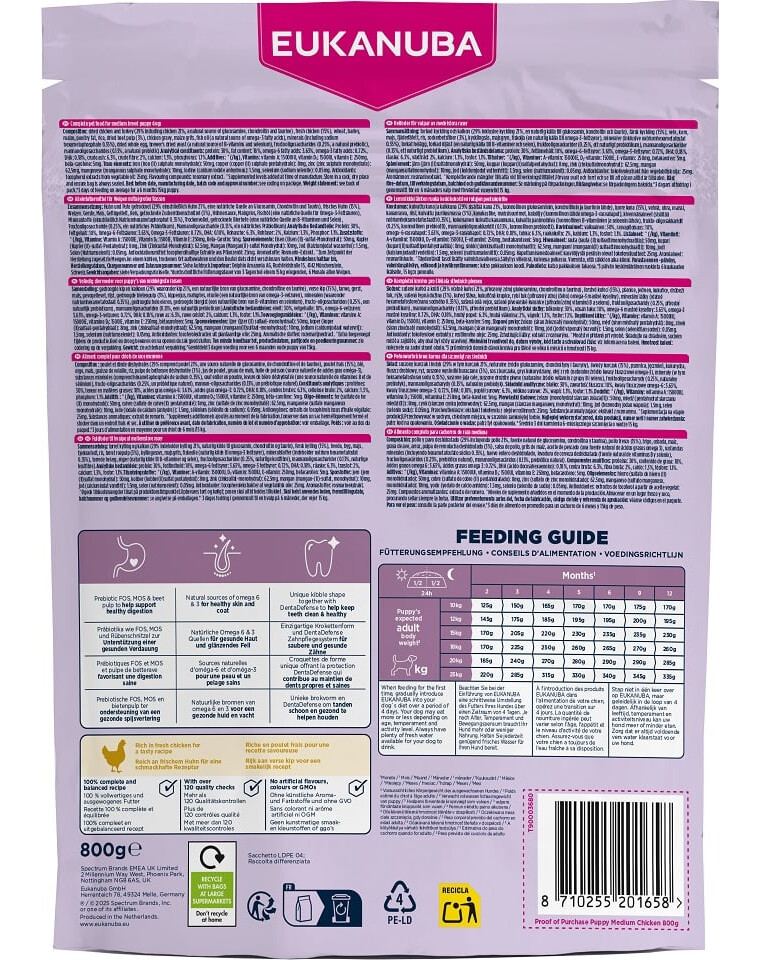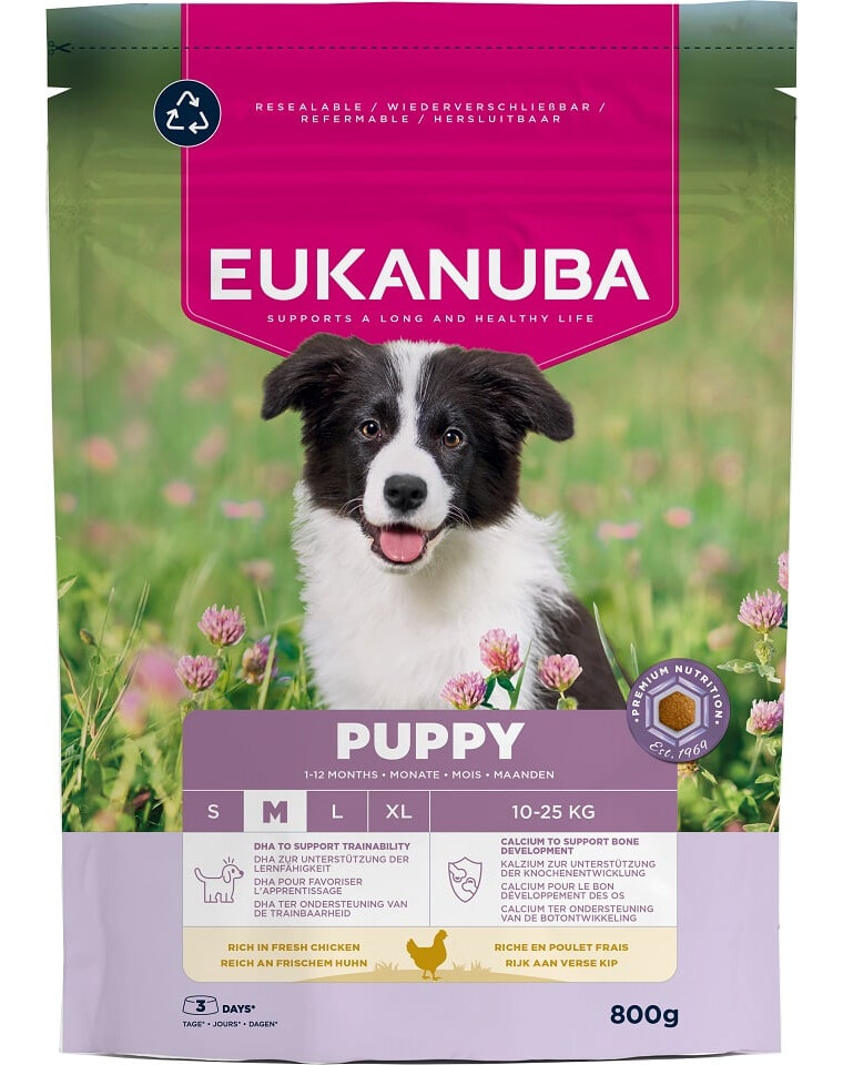 Šī sausā barība EUKANUBA ir izstrādāta kucēniem vidējo šķirņu suņiem vecumā no 1 līdz 12 mēnešiem. Tās pamatā ir svaiga vista, kas ir pilnvērtīga olbaltumvielu avots, kas atbalsta spēcīgu muskuļu attīstību un pareizu jauna suņa kondīciju.