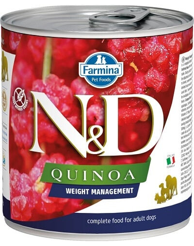 "FARMINA N&D Quinoa Dog Weight Management 285 g jēra gaļas suņiem ar lieko svaru Pilnvērtīga diētiskā barība pieaugušiem suņiem, kas ieteicama liekā ķermeņa svara samazināšanai. / Pilnvērtīga diētiskā barība ar jēra gaļu, kas ieteicama pieaugušiem suņiem ar lieko svaru.