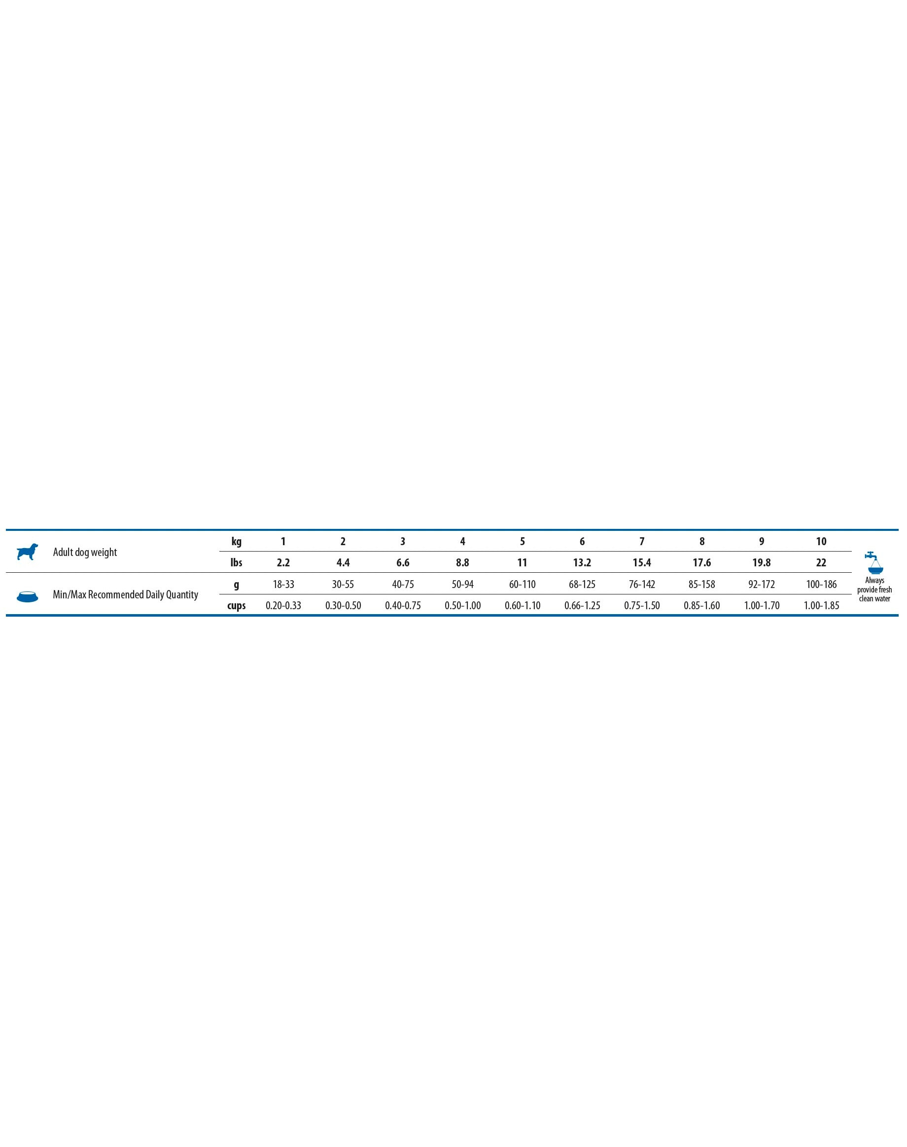 Norādītā deva ir orientējoša un jāpielāgo jūsu mājdzīvniekam individuāli, ņemot vērā aktivitātes līmeni un dzīvnieka veselības stāvokli.
