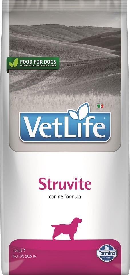 "Farmina Vet Life Struvite" ir pilnvērtīga diētiskā barība suņiem, ko ieteicams lietot, lai šķīdinātu struvīta akmeņus un samazinātu to veidošanos.