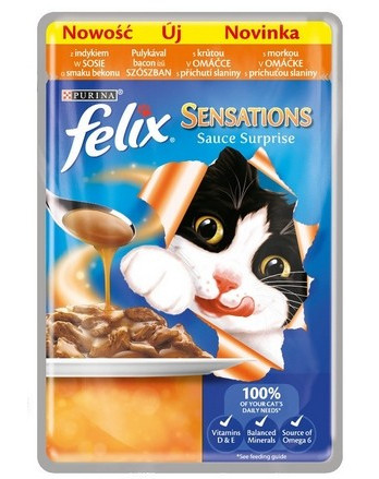 Garšīgs kaķu maisiņš, 100g. Tītara mērcē ar bekona garšu.