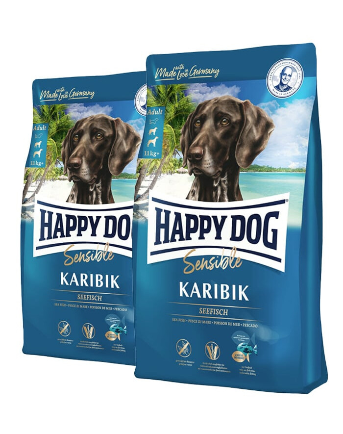 Happy Dog Supreme Sensible Caribbean ir barība pieaugušiem suņiem ar pārtikas alerģijām un nepanesamību, kas satur tikai viena veida olbaltumvielas un nesatur graudaugu piedevas. Tā satur dziļūdens zivis no sertificētas zvejniecības un kartupeļus, kas nesatur lipekli, tāpēc tā ir labi panesama un viegli sagremojama, ideāli piemērota visiem jutīgiem suņiem. Tā ir papildināta arī ar vērtīgajām Omega-3 un Omega-6 taukskābēm, kas ir svarīgas jūsu mīluļa veselīgas ādas un spīdīga kažoka uzturēšanai.
