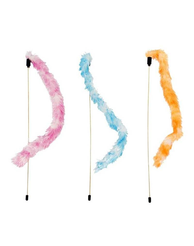 Zvejas nūja kaķim ar garu, pūkainu asti ir ideāla rotaļlieta, kas stimulē dabisko medību instinktu, mudina uz kustību un kopīgu spēli ar saimnieku. Viegls, elastīgs nūjas kāts un mīksts, kažokādas asti pievērš kaķa uzmanību un motivē lēkt, ķert un skriet.< /P>