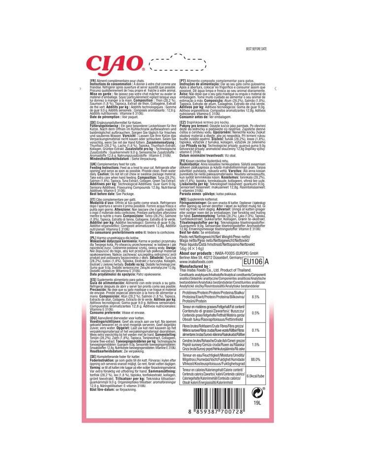 INABA Churu Cat krēmveida tunča un laša kārums kaķiem 56 g
