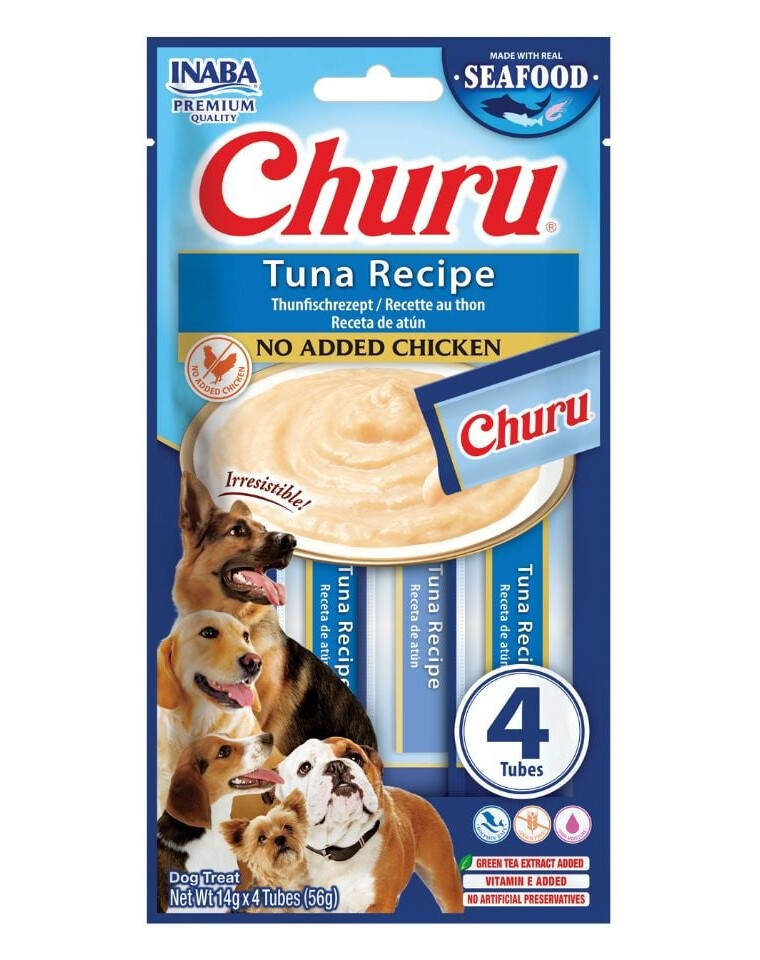 INABA Dog Churu ir īpaši krēmveida, viegli un ārkārtīgi garšīgi našķi tūbiņās ar tunzivīm, radīti, lai veselīgi palutinātu suņus. To maiga konsistence un izteiksmīgā zivju garša padara Churu par suņu iecienītu visā pasaulē — gan kā našķi, balvu, gan kā piedevu ikdienas ēdieniem.