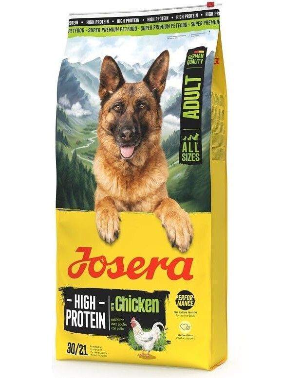 Josera High Protein Chicken ir piedāvājums pieaugušiem suņiem visu šķirņu, kuriem ir paaugstināts enerģijas un olbaltumvielu pieprasījums. Tas lieliski der: