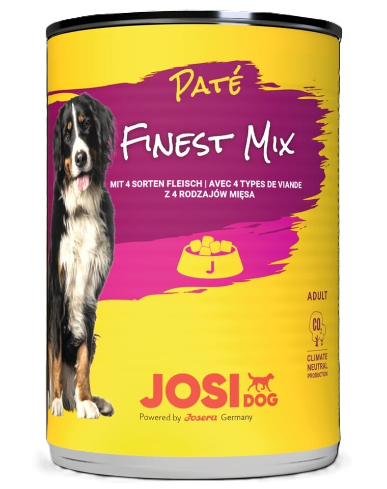 Pilnvērtīga mitrā barība ar īpaši gardu, pastētes konsistenci, radīta domājot par pieaugušiem suņiem, kuri mīl dažādību un bagātīgu garšu. JosiDog Paté Izsmalcināts gaļas maisījums ir īsta svētku maltīte suņu bļodā – piecu dažādu gaļas veidu apvienojums, kas nodrošina pilnvērtīgu olbaltumvielu un nepieciešamo uzturvielu piegādi.