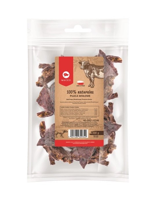 Ar īpašu tehnoloģiju kaltētas liellopu gaļas plaušas ir gardums ar dabisku garšu un smaržu. Uzkodu priekšrocība ir tas, ka tajos ir daudz vitamīnu un olbaltumvielu.