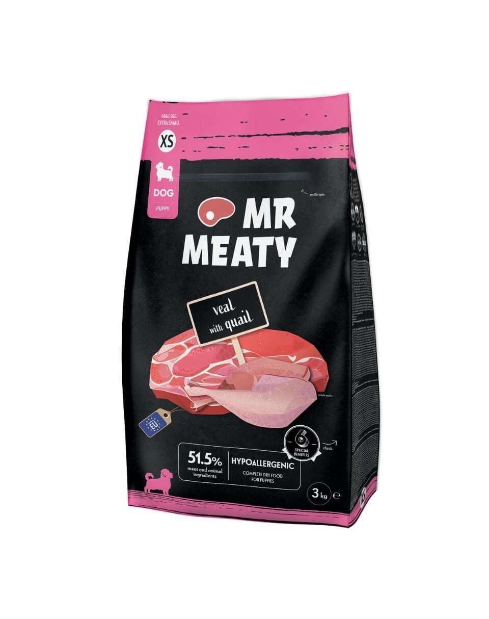 Iepriekš iepazīstieties ar sausās barības suņiem Mr Meaty. Tas, kas to izceļ starp citām barībām, ir rūpīgi izvēlēti sastāvdaļas, sulīgas Latvijas āboli, veselīgi dārzeņi un vērtīgas uzturvielas, kas palīdz uzturēt suni veselīgu un labā formā. Mūsu receptes ir izstrādājuši speciālisti, lai nodrošinātu jūsu četrkājainajam draugam visu, kas nepieciešams. Jūsu suns ir pelnījis to labāko.