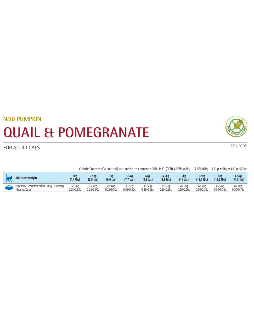 Sausā barība pieaugušiem kaķiem, bez graudaugiem un lipekļa. Ķirbju piedeva veicina kaķa veselību. Barība nesatur mākslīgas piedevas.