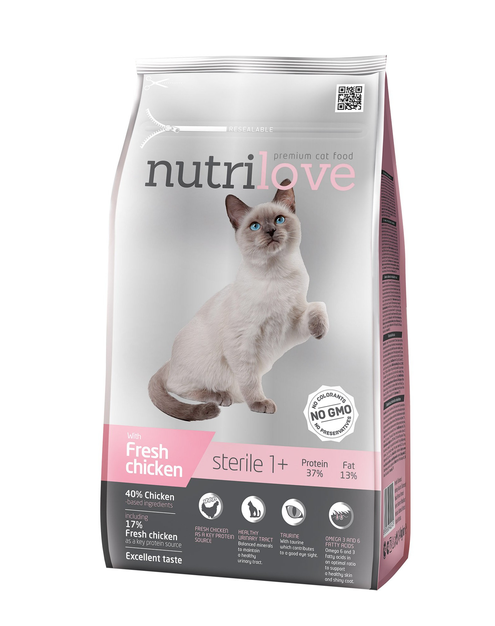 NUTRILOVE Premium dla kota Sterile ar svaigu vistas gaļu