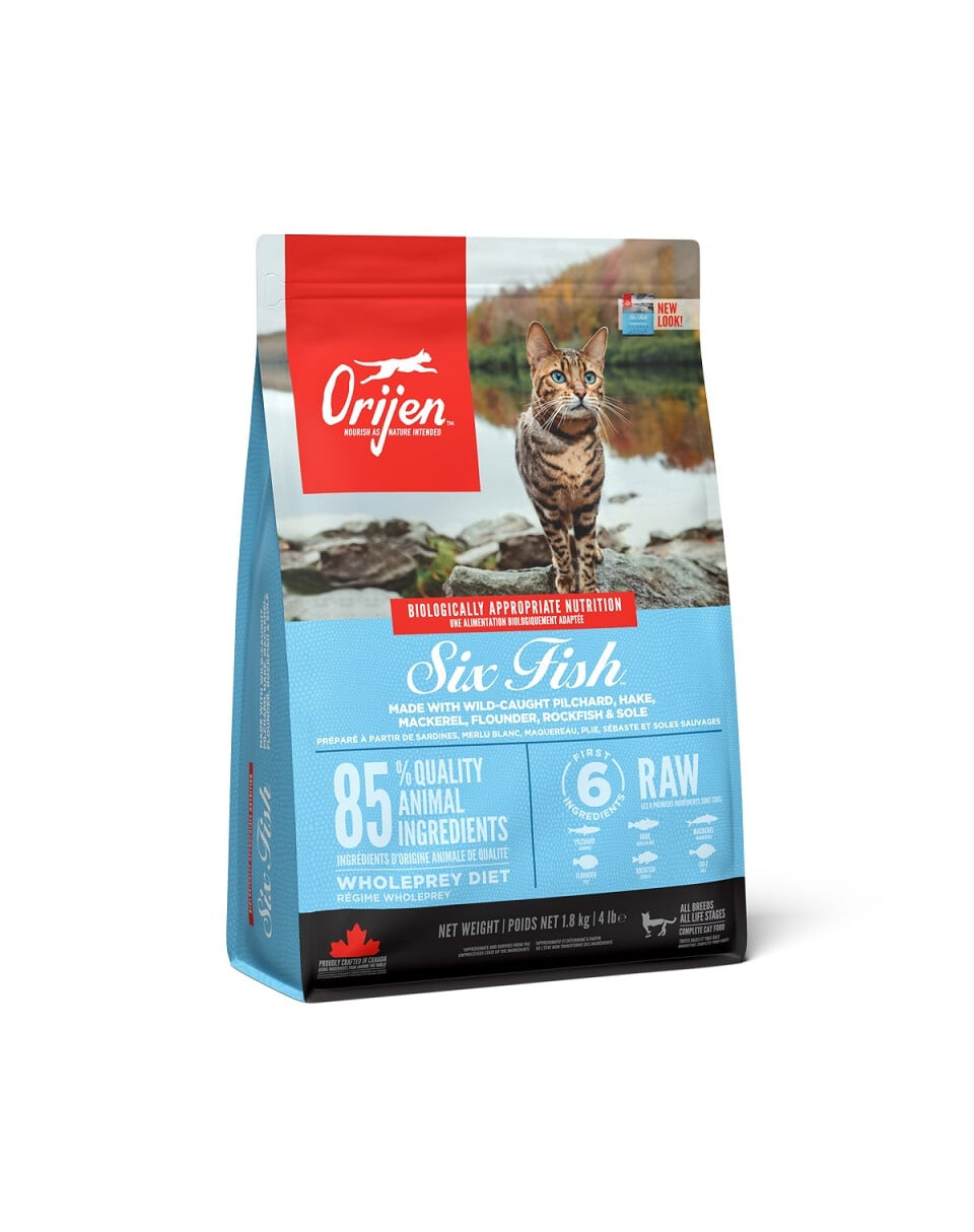 Tas ir pilns ar uzturvielām bagātiem proteīniem, kas iegūti no 6 savvaļā nozvejotām zivju sugām. Sastāvdaļas katru dienu tiek piegādātas svaigas un pievienotas ēdienam pilnvērtīgās proporcijās. Formulā ir ierobežots tauku un ogļhidrātu daudzums un unikāls ķirbju un ābolu šķiedrvielu maisījums, kas nodrošina lielisku kondīciju visiem pieaugušajiem kaķiem. Barības sastāvs tika veidots, pamatojoties uz kaķu senču diētu un gadiem ilgu pētniecību. Augsts dzīvnieku izcelsmes olbaltumvielu saturs (85 %) nodrošina vislabāk un visātrāk uzsūcošās aminoskābes un citas uzturvielas. 2/3 sastāvdaļu ir piemērotas lietošanai pārtikā, pārtikā tās apstrādā tikai saudzīgi, bet atlikušo 1/3 dehidrē 90* temperatūrā.