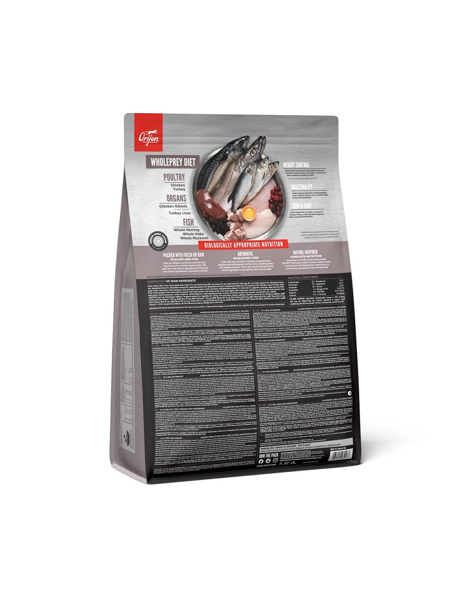 Tas ir pilns ar uzturvielām bagātiem proteīniem, kas iegūti no brīvās turēšanas apstākļos audzētām vistām un tītariem, savvaļā nozvejotām zivīm un bara olām. Sastāvdaļas katru dienu tiek piegādātas svaigas un pievienotas ēdienam pilnvērtīgās proporcijās. Formulā ir ierobežots tauku un ogļhidrātu daudzums un unikāls ķirbju un ābolu šķiedrvielu maisījums, kas nodrošina lielisku kondīciju visiem pieaugušajiem kaķiem. Barības sastāvs tika veidots, pamatojoties uz kaķu senču diētu un gadiem ilgu pētniecību. Augsts dzīvnieku izcelsmes olbaltumvielu saturs (85 %) nodrošina vislabāk un visātrāk uzsūcošās aminoskābes un citas uzturvielas. 2/3 sastāvdaļu ir piemērotas lietošanai pārtikā, un tās tiek tikai viegli apstrādātas, bet pārējās 1/3 tiek dehidrētas 90* temperatūrā.